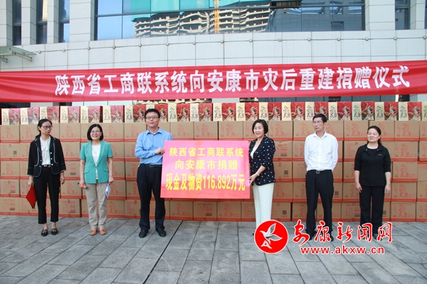 本网讯(记者 陆青波)连日来的多轮降水,导致我市全域内不同程度地出现洪涝灾害,给广大人民群众生命财产安全造成严重影响,牵动着全省同胞的心,陕西省工商联号召省属商协会及会员企业紧急向安康驰援,并于9月30日在安康举行了灾后重建捐赠仪式。省工商联党组成员、副主席郭慧娥,市委常委、统战部部长雷西明,市政协副主席、市工商联主席孟平出席捐赠仪式。