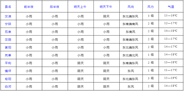 预计今天晚上到明天白天小雨转阴天;明晚到9日阴天间多云,西北部阴转小雨;10日小雨转阴天;11日阴天;12日多云转晴;13日晴间多云;14日晴转多云。3QZ安康新闻网