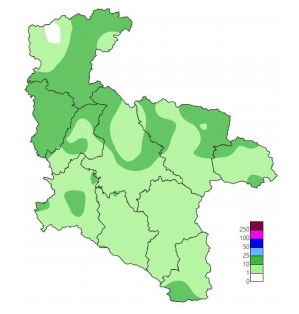下图为2021-10-7 07:00至2021-10-8 07:00安康累计降水分布(单位:mm)