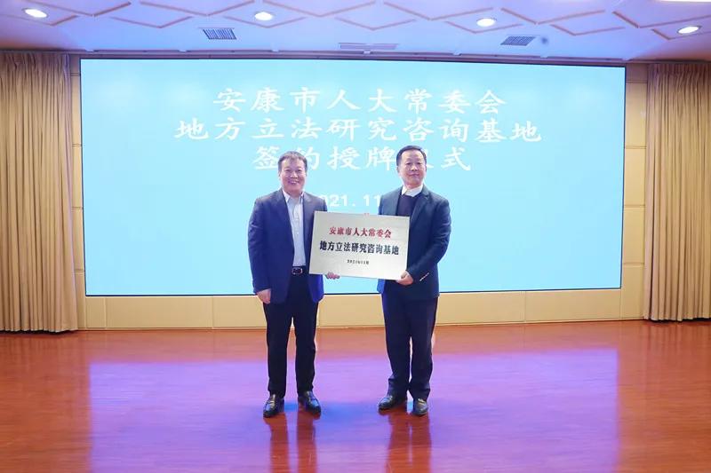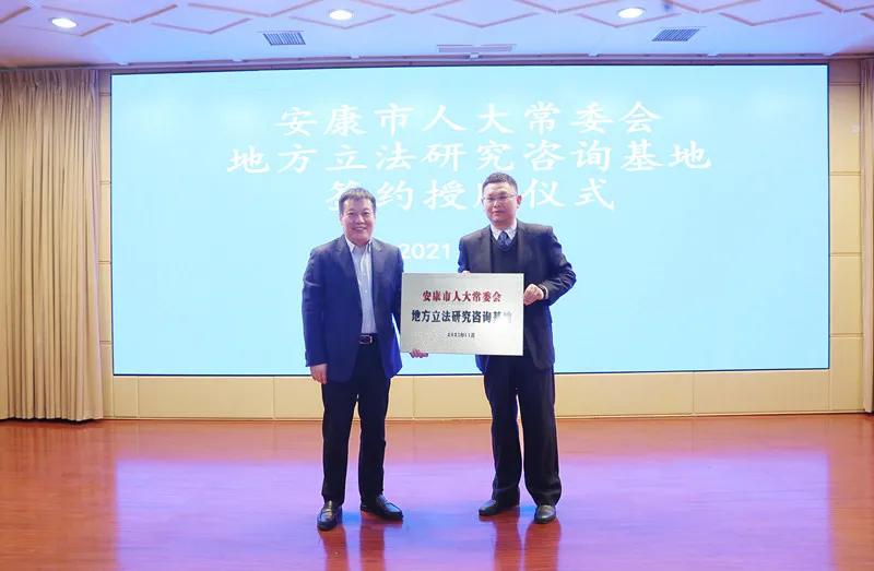 仪式上,市人大常委会法工委与西北政法行政法学院、安康学院马克思主义学院签订了地方立法合作协议,市人大常委会主任邹顺生向这两个学院颁发了“安康市地方立法研究咨询基地”牌匾。