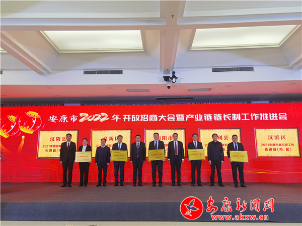 会议通报了安康市经济社会发展、重点产业链链长制推进、重点产业方向、营商环境及2022年开放招商重点工作,表彰了2021年招商引资工作先进单位和先进个人。李华枫等16名同志聘为安康市开放发展高级顾问。