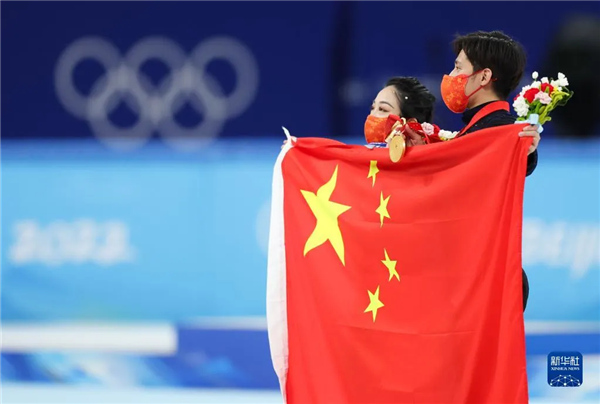 ▲2月19日晚,中国花样滑冰选手隋文静、韩聪获得北京冬奥会双人滑金牌。