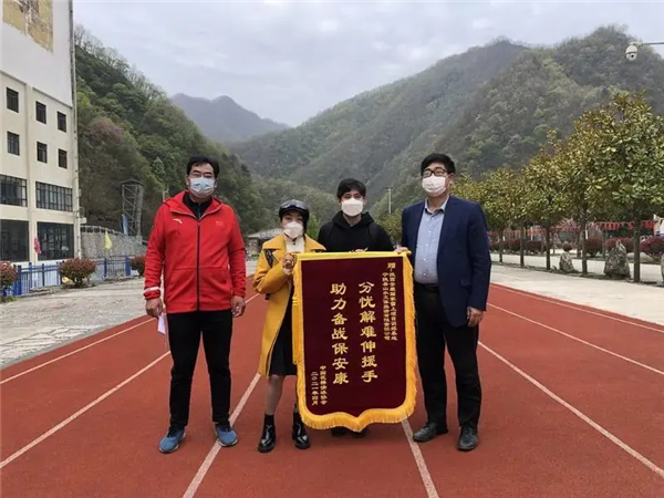 ▲去年4月,隋文静和韩聪向安康宁陕县的国家雪上项目训练基地负责人林晋炎送上锦旗。
