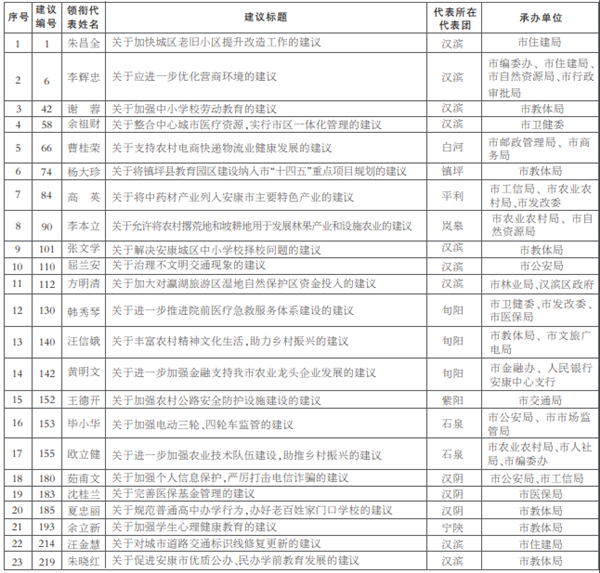 市四届人大七次会议优秀代表建议一览表