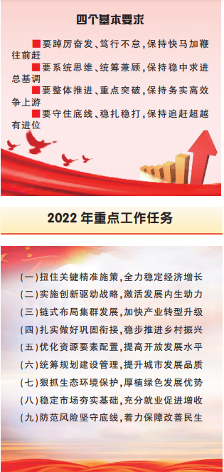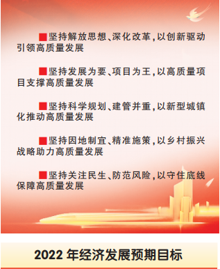 生产总值增长6.5%左右,固定资产投资增长7%左右,规上工业增加值增长8%左右,社会消费品零售总额增长8.5%左右,城乡居民人均可支配收入分别增长7%和8.5%以上,单位生产总值能耗下降3%左右。