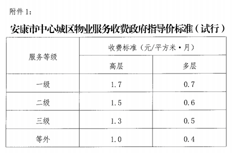 附:1、《安康市中心城区物业服务收费政府指导价标准》(试行);
