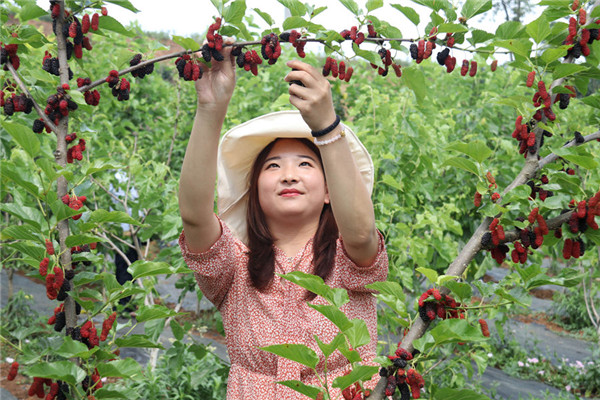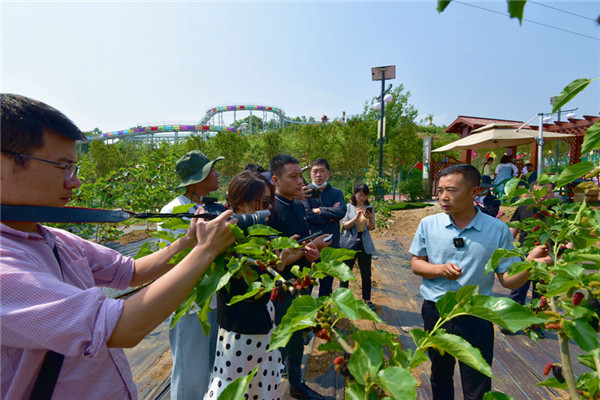 游客在池河镇明星村醉美桑海博览园采摘桑果