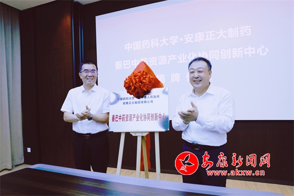 本网讯(记者 艾蓓)8月10日,中国药科大学·江苏食品药品职业技术学院助力安康乡村振兴座谈会召开。市委书记武文罡,中国药科大学党委书记金能明共同为中国药科大学·安康正大制药秦巴中药资源产业化协同创新中心揭牌并讲话。江苏食品药品职业技术学院党委委员、副校长张建华,市委常委、副市长柴丽,市委常委、安康高新区党工委书记罗武侠出席活动。