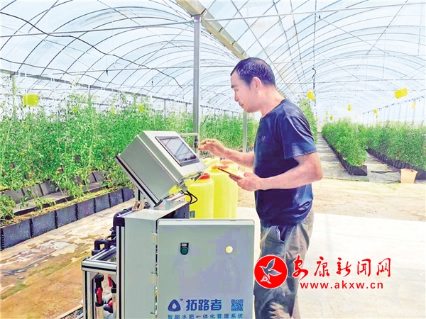 田祖山正在操作智能水肥一体化管理系统。