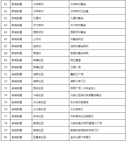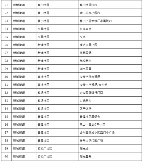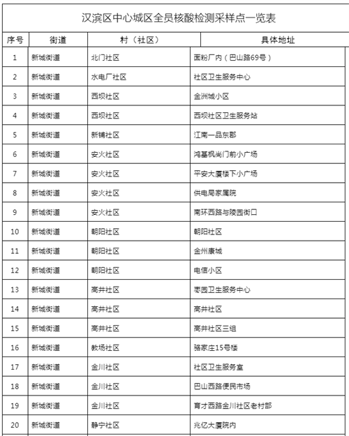 附件:汉滨区中心城区全员核酸检测采样点一览表