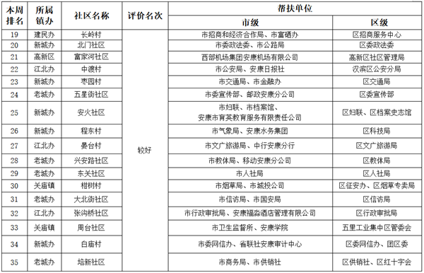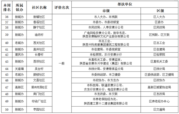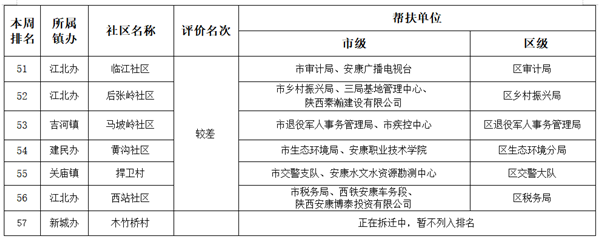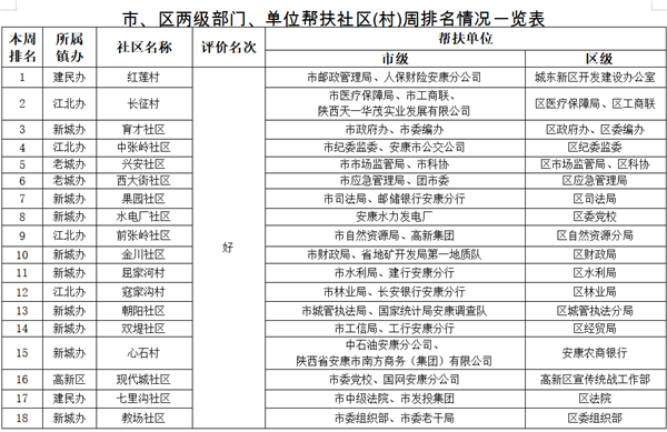 附件:市、区两级部门、单位帮扶社区(村)周排名情况一览表FFk安康新闻网