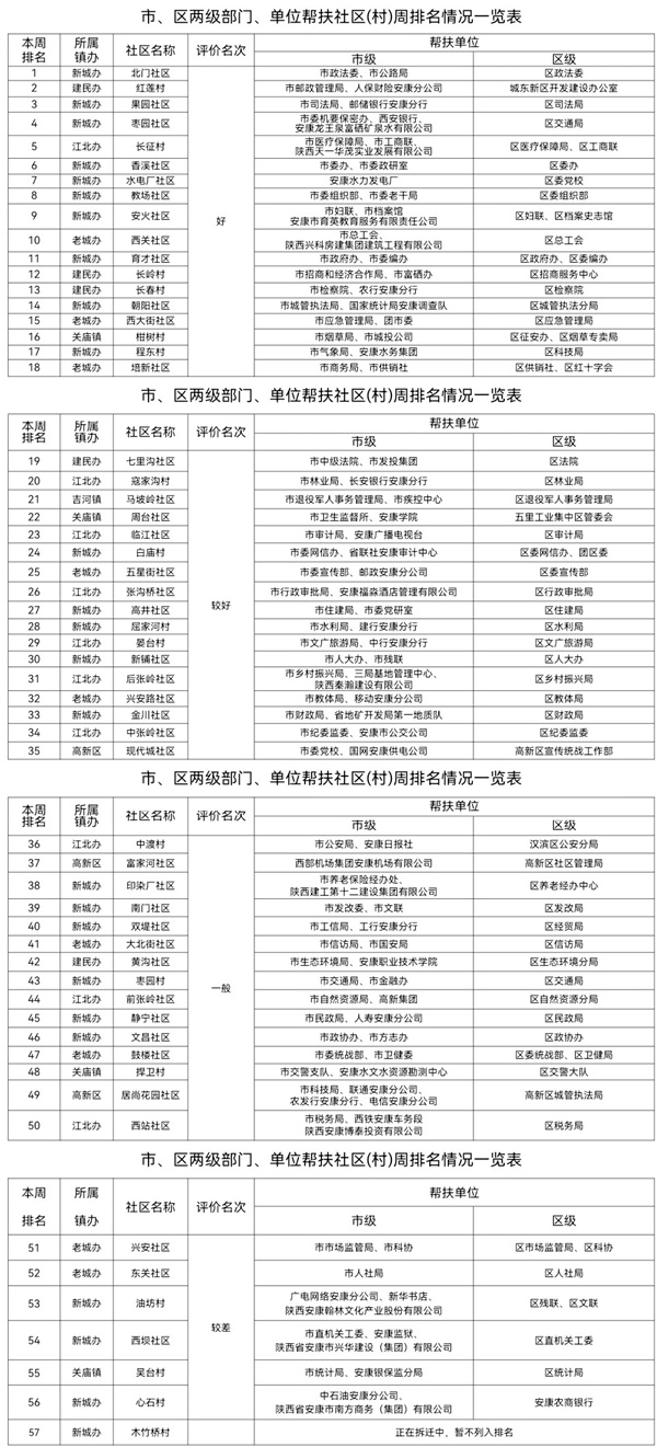 附件:市、区两级部门、单位帮扶社区(村)周排名情况一览表