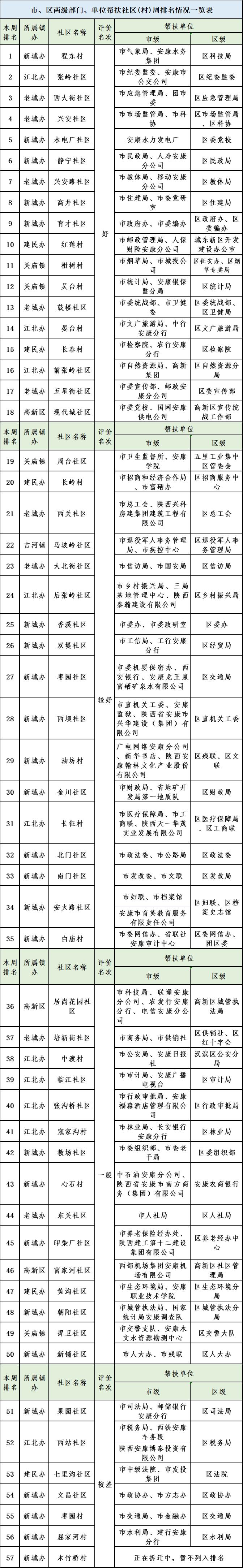 附件:市、区两级部门、单位帮扶社区(村)周排名情况一览表