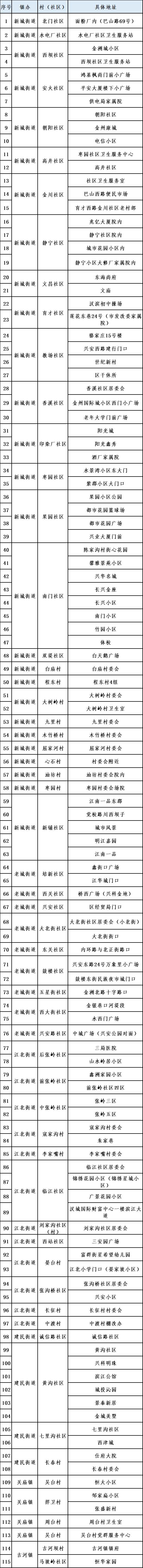 附件:汉滨区中心城区全员核酸检测采样点一览表