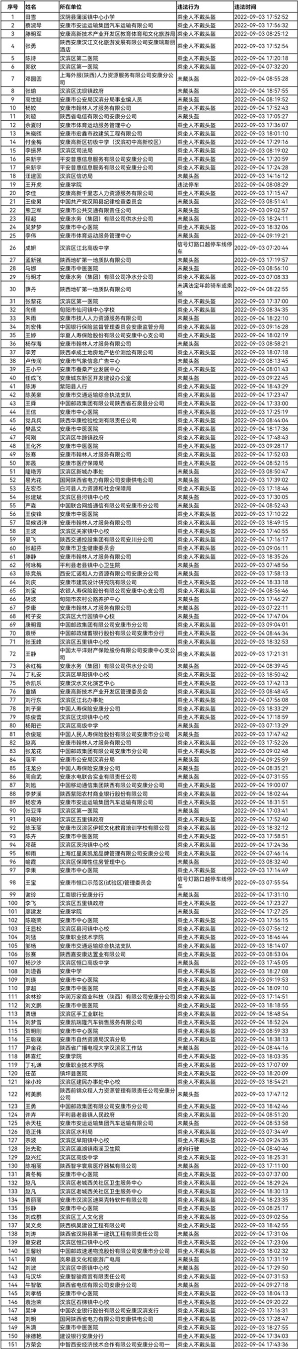为深入推进全国文明城市创建工作,引导广大市民自觉遵守交通规则,共同营造文明交通环境,根据汉滨公安分局交警大队提供的交通违法数据,对近期城区道路交通违法情况进行通报(共计151人次)。希望广大市民引以为鉴,自觉践行“开文明车、走文明路、做文明人”,特别是公职人员要做到“文明创建我示范、文明礼让我先行”,并教育引导家人、身边人自觉遵守交通规则。各交通违法人员所在单位要全面加强干部职工教育管理,对交通违法人员进行提醒教育,举一反三,扎实整改,坚决杜绝再次发生类似交通违法行为,以实际行动为全国文明城市创建作出贡献。