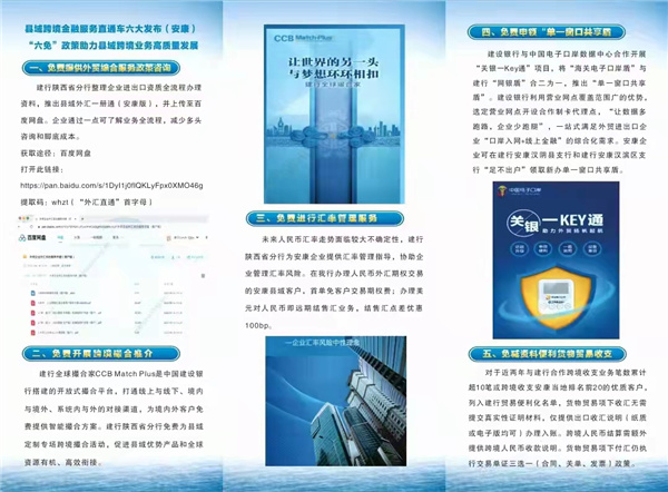 会上,中国建设银行陕西分行相关负责人就县域跨境金融服务直通车的模式、六免政策、外贸企业线上跨境金融产品进行了介绍。