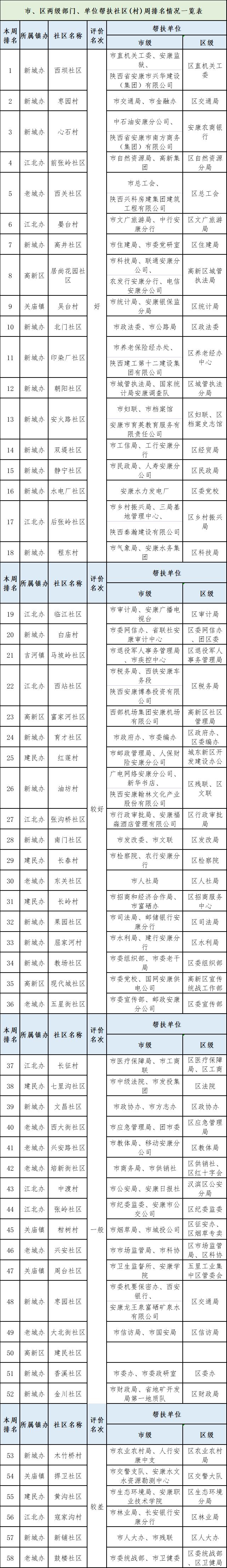 附件:市、区两级部门、单位帮扶社区(村)周排名情况一览表