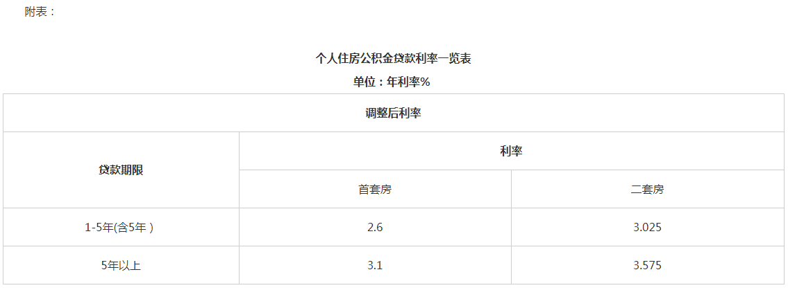 此次下调后,首套个人住房公积金贷款5年以下(含5年)和5年以上利率分别调整为2.6%和3.1%。第二套个人住房公积金贷款利率政策保持不变,即5年以下(含5年)和5年以上利率分别不低于3.025%和3.575%。