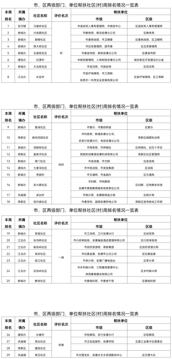 附件:市、区两级部门、单位帮扶社区(村)周排名情况一览表