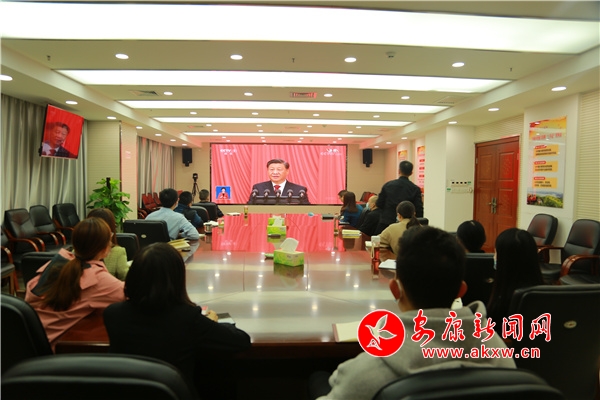 △市市场监管局组织全体党员干部收听收看中国共产党第二十次全国代表大会开幕会直播。(通讯员 程婷婷)