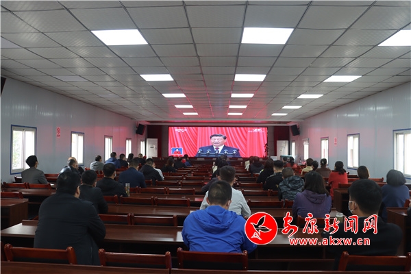 △江北街道组织党员干部群众收听收看中国共产党第二十次全国代表大会开幕会直播。(通讯员 宋玉凤 贾潇)