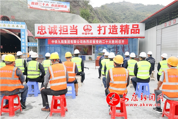 △中铁九局西康高铁项目部组织工作人员收听收看中国共产党第二十次全国代表大会开幕会直播。(记者 罗超)