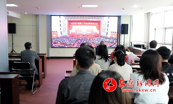 △安康日报社组织全体党员干部集中收看中国共产党第二十次全国代表大会开幕会直播。(通讯员 黄申奥)