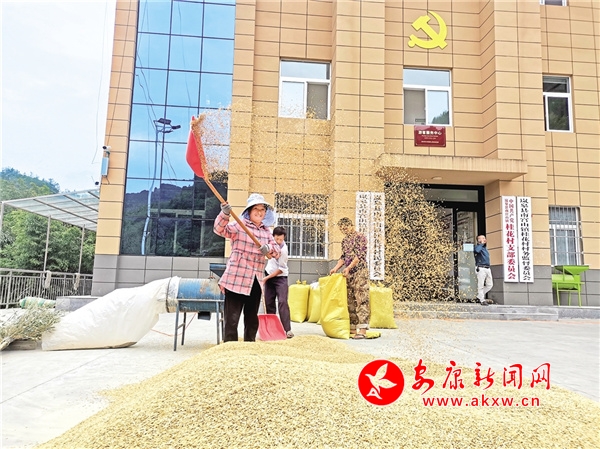 南宫山镇桂花村村民晒稻谷
