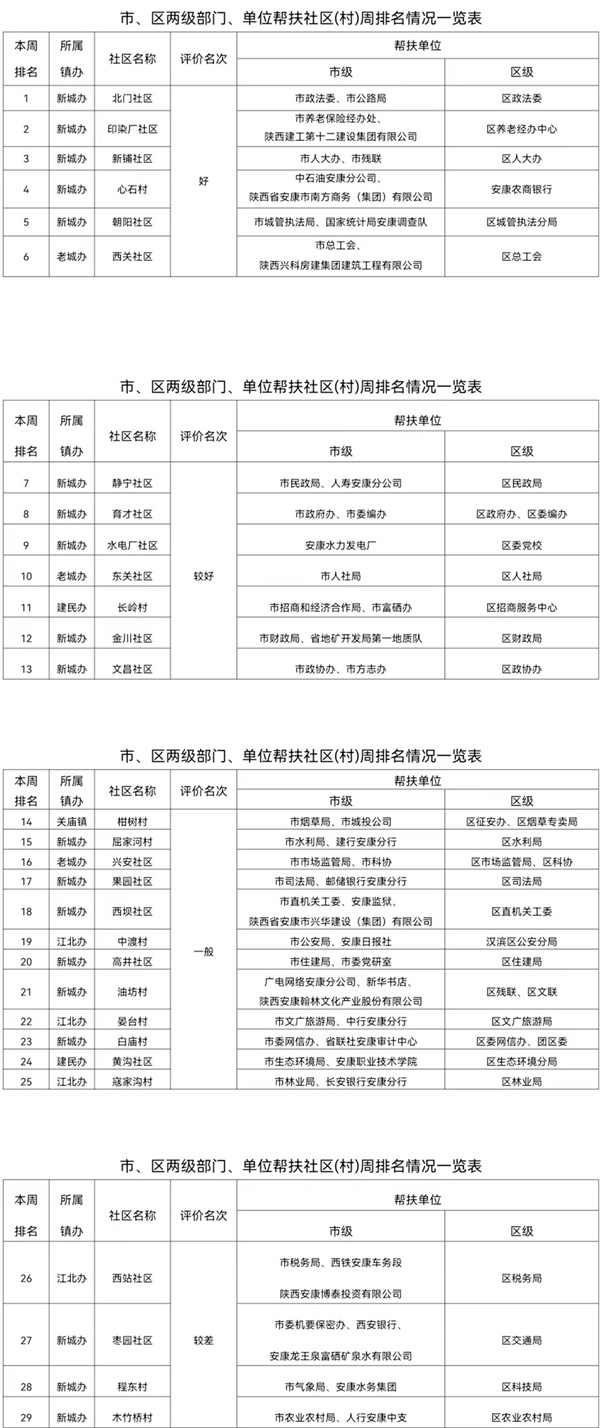 附件:市、区两级部门帮扶社区(村)周排名情况一览表
