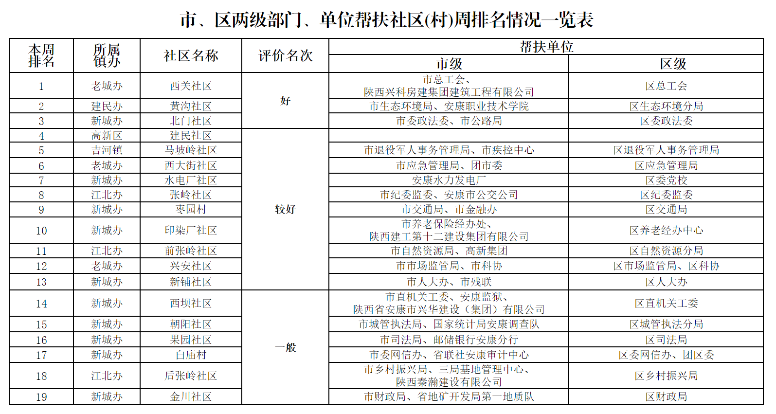 附件:市、区两级部门帮扶社区(村)周排名情况一览表