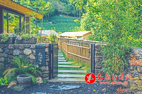花婆婆民宿有6座院落、1栋云上会客厅,建筑面积1800多平方米。行走在民宿度假区,花、草、树、石、步道、房屋错落相应,虚实相生。一棵冠如巨伞的核桃树兀立于小院中,树龄至少百年以上,主干黝黑皴裂,枝丫遒劲繁密。“原来的院子和树也是这样共生的。”往年茶季,老房主周显勤一家经常在核桃树下手工揉茶、摊开簸箕晒茶。他说,虽然现在已经有了一家标准化茶厂,但是依然怀念在老屋制茶的日子。这些带着时光印痕的物景和故事,最能引起人们对乡村记忆的共鸣,实现对心灵的疗愈。花婆婆民宿建造中遵从了这一规律,始终坚持尽最大可能地保留原始风貌,哪怕是一块凸起的石头和贴在岩壁上的青苔,也小心地呵护着。