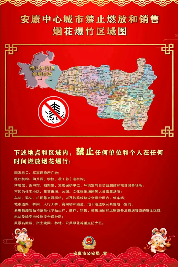 安康中心城市禁止燃放和销售烟花爆竹区域图