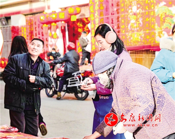 ⑨1月16日,春节前夕,平利县洛河镇集镇老街居民纷纷上街置办春联等年货,一派喜迎新春的热闹氛围。