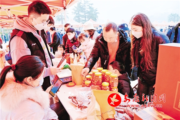 ⑥紫阳年货节上,本地企业正展示当地特产。