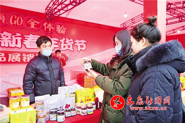 ⑤安康市2023新春年货节在金州广场举行,各县区的农副产品广受市民欢迎。