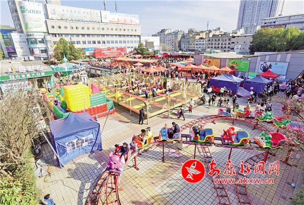 ③假日的安康城区中心广场,各种游乐设施齐登场,市民尽享商业繁荣带来的便利。