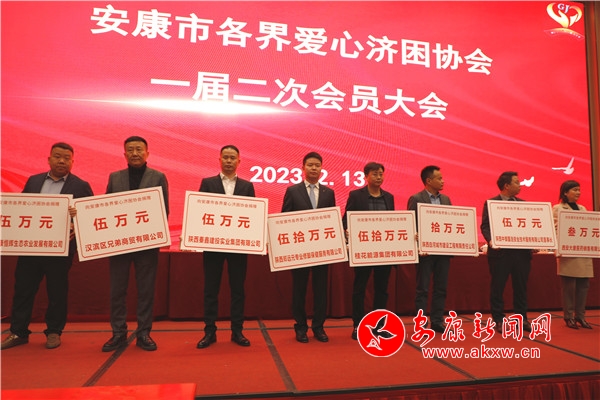 会议听取了安康市第一届爱心济困协会理事会所作的《安康市各界爱心济困协会工作报告》,宣读了协会增补副会长、理事会成员名单,表彰颁发了最佳奉献奖、爱心企业奖,市各界爱心济困协会会长郑远元发起募捐倡议,并现场组织了募捐。
