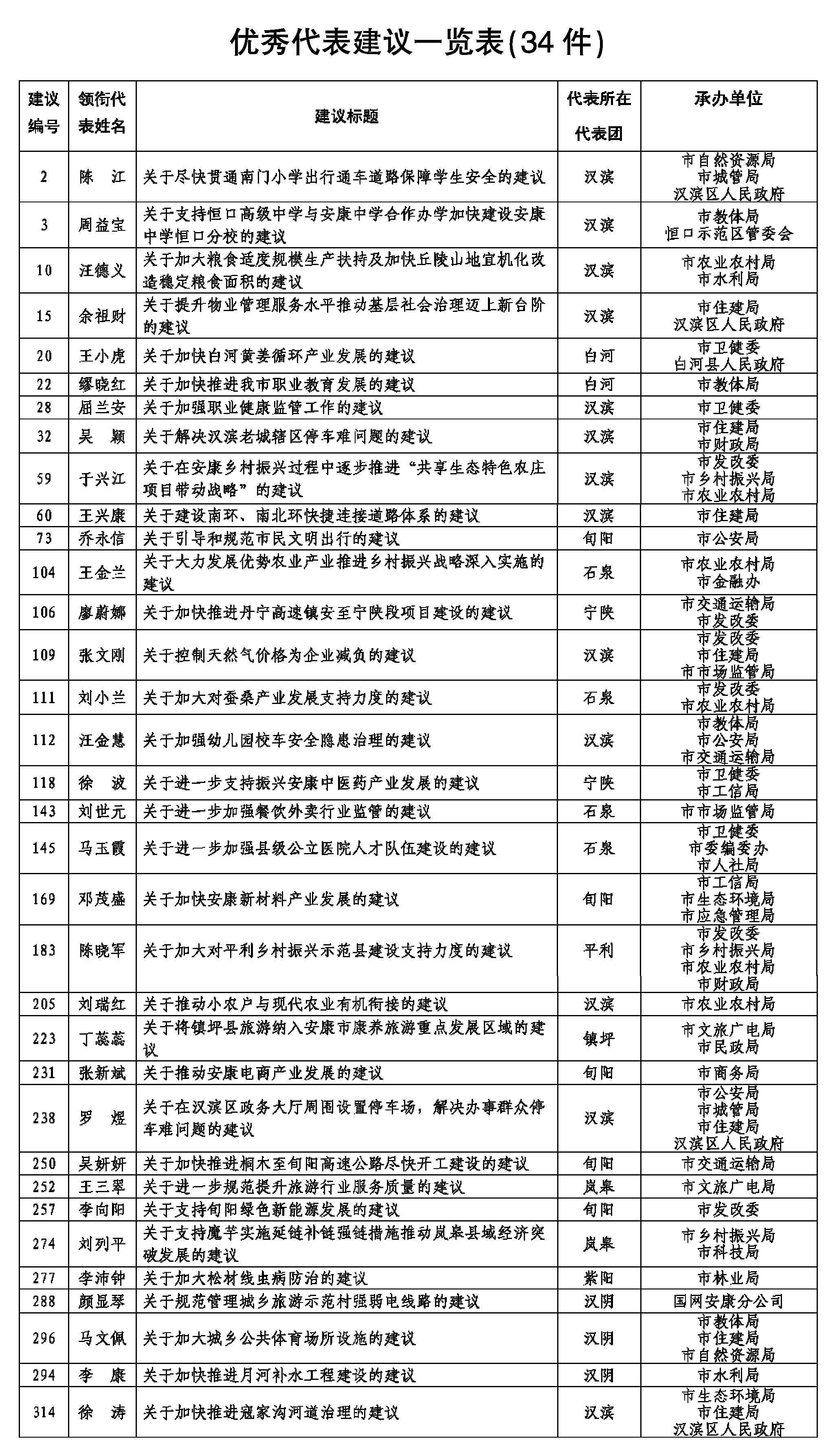 附件:优秀代表建议一览表