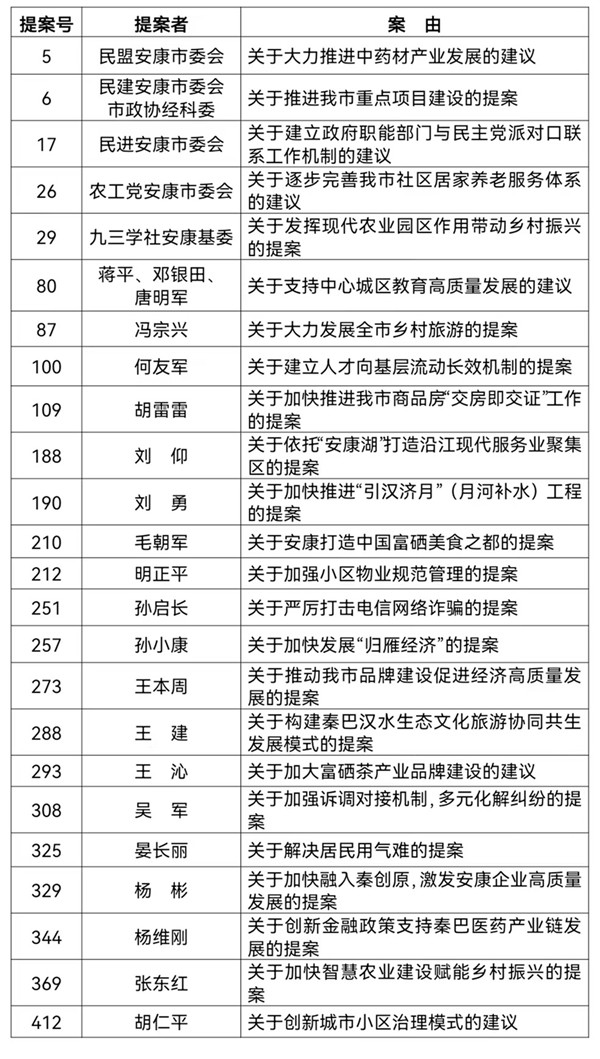 为鼓励先进、推进工作,根据政协安康市委员会《提案工作办法》和《评选表彰优秀提案、先进承办单位和提案办理工作先进个人的办法》有关规定,经市政协提案委员会综合评审,报市政协主席会议审议通过,决定对《关于大力推进中药材产业发展的建议》等24件优秀提案、市委办公室等16家先进承办单位和刘莎等16名办理工作先进个人予以表彰。