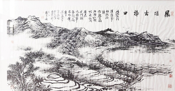 当时在现场采访的安康电视台主任记者程云也对这一点印象深刻,她很少见到有画家在井井有条地回答媒体提问的同时,又能飞快自如地运笔作画,而且创作的是难度很大的焦墨画。“他满腹激情,口才很好,我们还没来得及完全领悟他的‘千毫皴’画法的神奇,一幅生动的古梯田‘千毫皴’写意画就已经完成了,小小的画纸,呈现出山川的气势,在场观者无不为之叹服。”