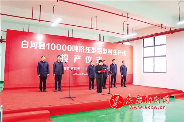 2月8日,白河县第一季度15个重点项目集中开(竣)工,年产1万吨挤压型铝型材生产线正式投用,主要生产光伏板的边框和支架。