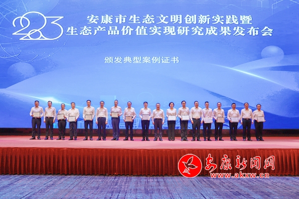 会上,播放了安康市生态文明创新实践和生态产品价值转化专题片,发布了安康市生态产品目录清单、安康市生态产品总值核算规范、安康市生态产品总值核算报告(2020年度)等5项研究成果,交接了安康市生态系统生产总值(GEP)自动化核算平台钥匙,向各县(市、区)颁发了典型案例证书。