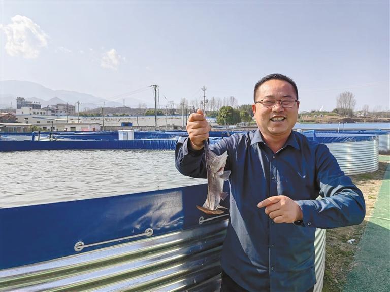 “2021年,我们村和邻村的一家企业联合发展渔业,我将自家的1.4亩闲置地流转给军坝村水产养殖基地,不仅每年有1000元的土地流转收入,而且还被该基地聘为工作人员,月工资2500元。”谢祖胜说,“我管护的鱼塘里有1万尾鱼,我每天要给鱼喂食4次,还要观察鱼是否受伤或有寄生虫等。如果管护得好,公司每月再奖励我500元。”