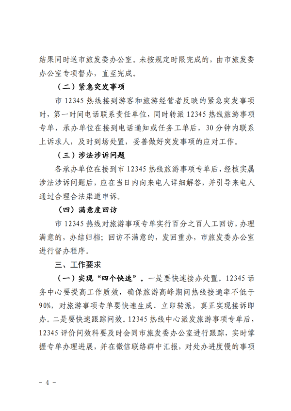 关于印发《12345 热线受理全市旅游事项“接