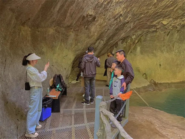 在中坝大峡谷,迎宾瀑的走廊上人头攒动,欢声笑语不断。游人们三五成群,漫步山中,绚丽多姿的风景引得不少游人驻足欣赏,拍照留念。