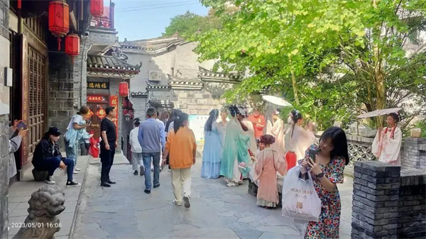 蜀河古镇景区迎来客流高峰,仅假期前三天,单日接待游客超六千人。在景区各集散地,文旅中心为广大来蜀游客提供志愿讲解、旅游咨询服务;同时,中心开放一楼大厅,为游客提供座椅茶水,避暑休憩及开放厕所服务,全力提升游客游览体验,营造舒心旅游环境。中心协助蜀河镇开展的“穿越千年古镇 畅游诗意蜀河”系列文化活动更是精彩纷呈,乐趣不断,让游客体验千年古镇的文化魅力。
