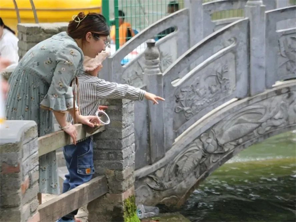 饶峰驿站的亲子游乐园传来孩子们的欢声笑语,烂漫且文艺的月季花长廊下坐满了游客,高空漂流的入口排满了长队,小朋友在露营烧烤的草坪上快乐奔跑、拍照留影,成为景区内又一道美丽的风景线。