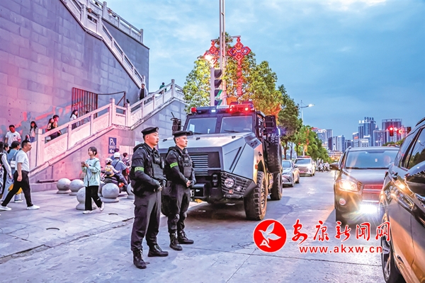 C7z安康新闻网 5月1日,西城阁执勤的特警。 汪德珍 摄C7z安康新闻网