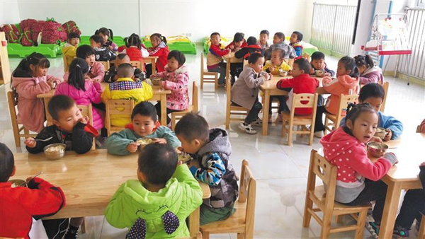汉阴县涧池镇紫云南郡社区幼儿园内,孩子们在用餐(资料照片)。