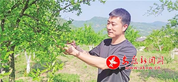 入春以来,在农业技术人员的技术指导下,村民们积极做好石榴树的疏枝修剪、水肥管理及抹芽等工作,现在正是疏花阶段。“这几天温度低,石榴还没大面积开花,等过几天温度升起来了,就要把残次花给疏掉,这样剩下的果子才长得大。”正在石榴园里忙碌的村民刘发俭拿着工具,一丝不苟地检查每一株石榴树的生长情况。